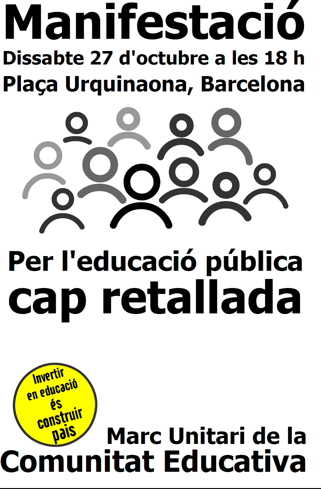La manifestació portarà els lemes “Per l’educació pública, cap retallada”, “Invertir en educació és construir país”.